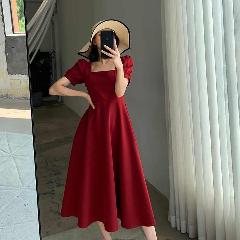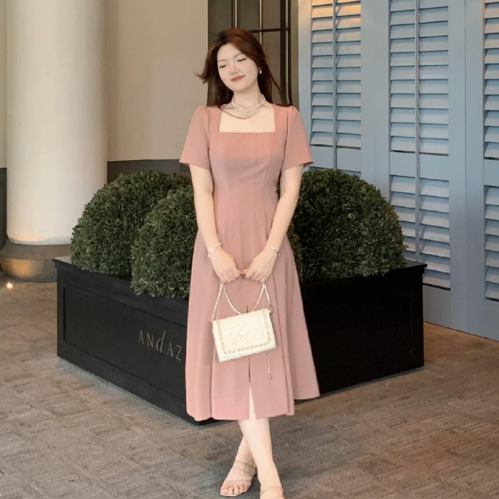 [Star] EMITA BLOOM midi dress hitam tanpa lengan Kondangan wedding dress A-Line Wanita kekinian Korean Style Scuba Premi
