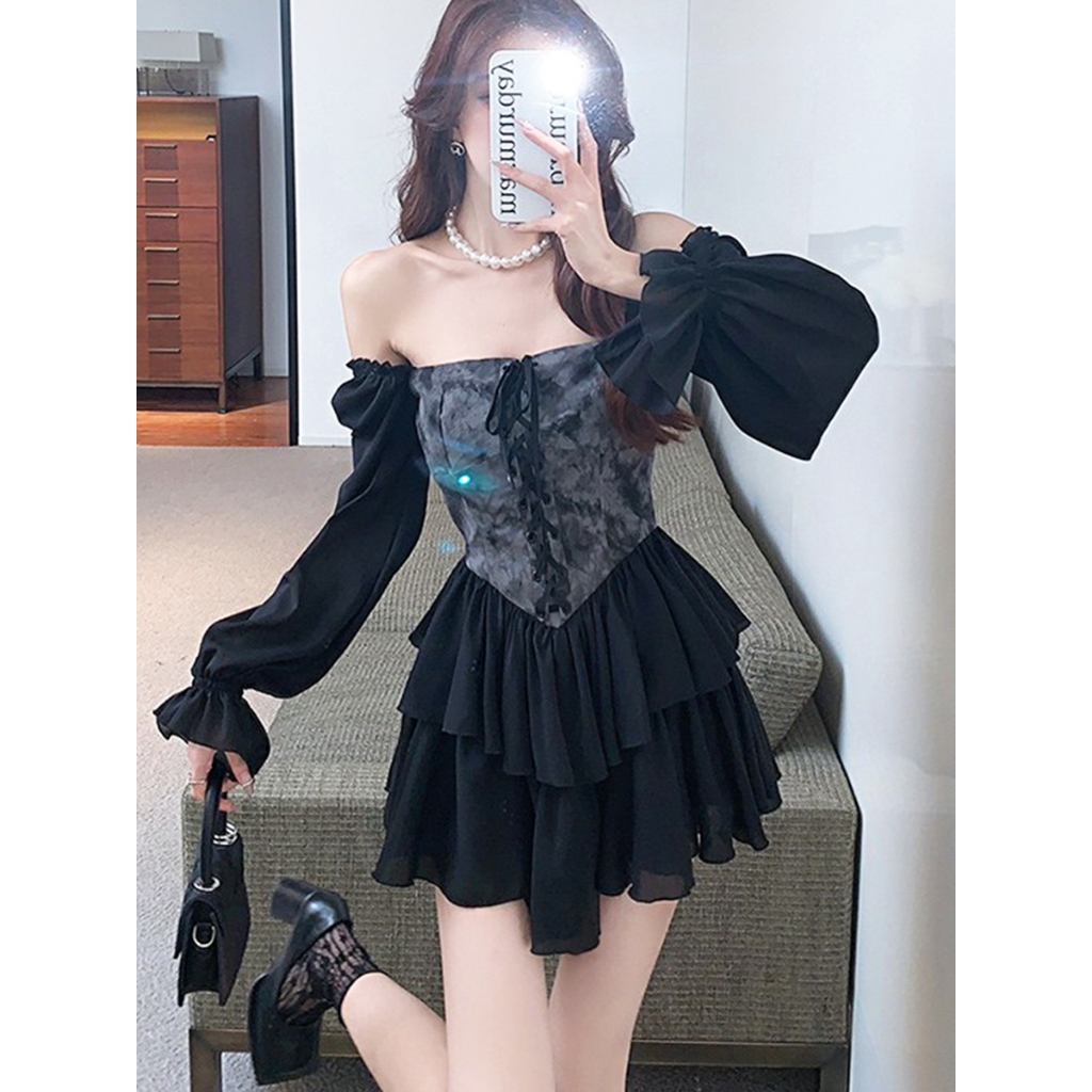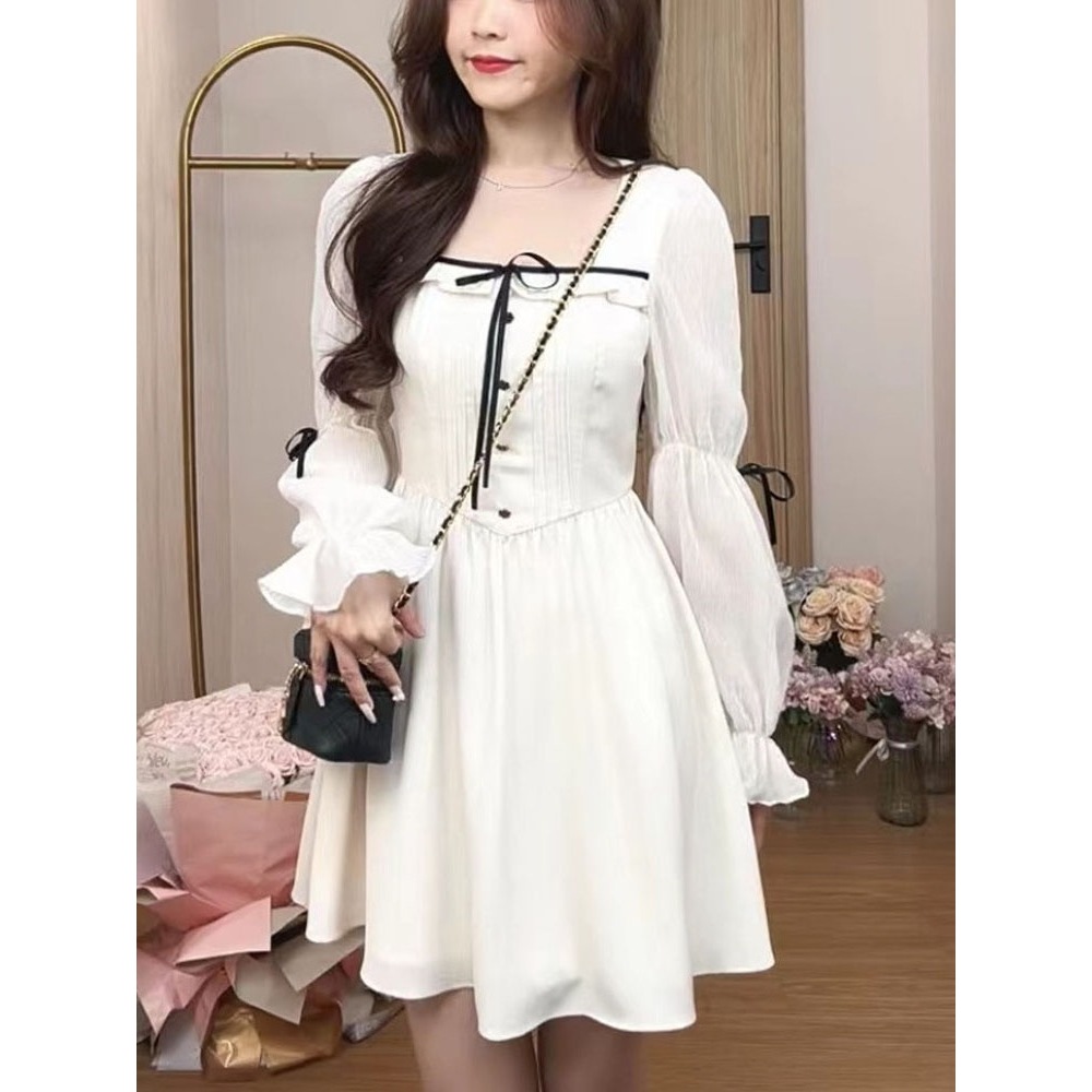 [Star] EMITA BLOOM mini dress Lengan Pendek Putih Wanita korea perempuan kekinian dress princess perempuan import korean