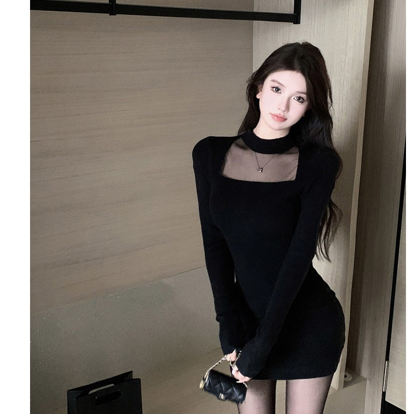 [Star] EMITA BLOOM baju mini dress hitam lengan panjang press body wanita party dress lace kekinian korean style aesthet