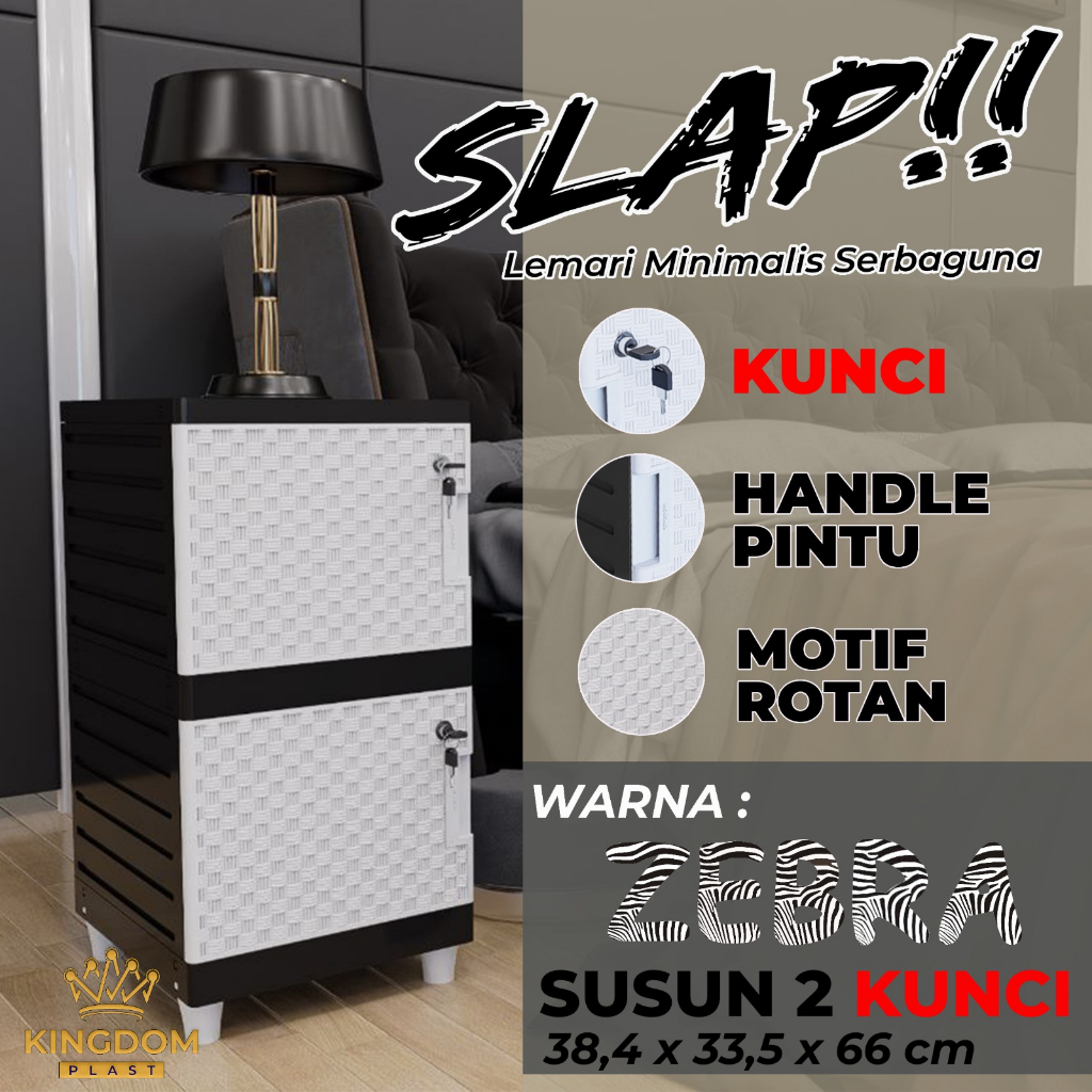 Lemari Plastik Pakaian Serbaguna Minimalis Slap Kingdom Zebra FULL KUNCI PUTIH KUNCI AURORA RAINBOW