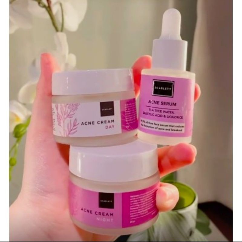 Paket JERAWAT SCARLETT SCARLET ACNE SERUM CREAM TONER MASKER DAN PAKET PENCERAH BRIGHTLY EVER AFTER AGE DELAY ANTI AGING