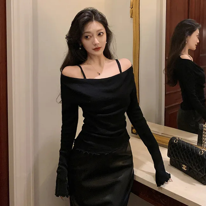 [Star] EMITA BLOOM baju atasan kaos wanita ootd terbaru red top wanita kekinian lengan panjang korean style import crop