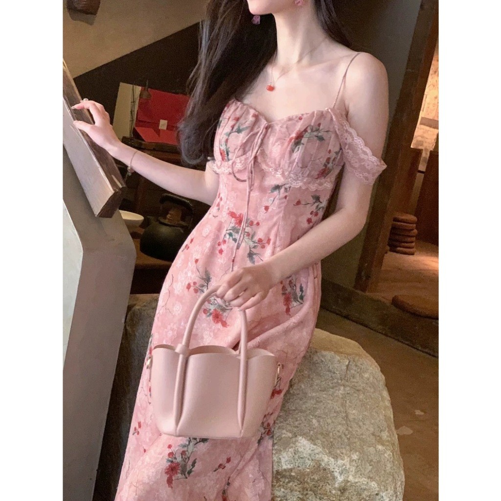 [Star] EMITA BLOOM midi dress tanpa lengan motif bunga terbaru korea style flowy dress pantai import wanita casual dress