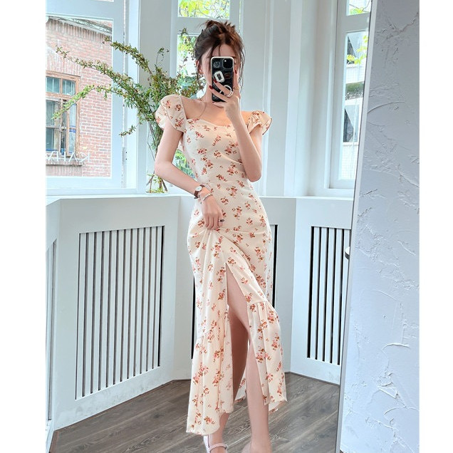 [Star] EMITA BLOOM midi dress tanpa lengan motif bunga terbaru korea style flowy dress pantai import wanita casual dress