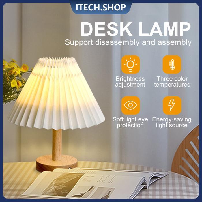 FLASH SALE LAMPU MEJA MINIMALIS LAMPU TIDUR MEJA RETRO PLEATED VINTAGE LAMPU USB DECORATIVE TABLE LAMPWHITE LIGHT