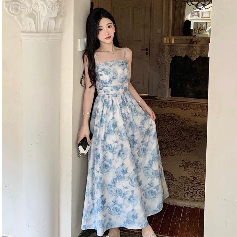 [Star] EMITA BLOOM floral midi dress cantik ke pantai panjang Wanita korean style tanpa lengan motif bunga jumbo terbaru