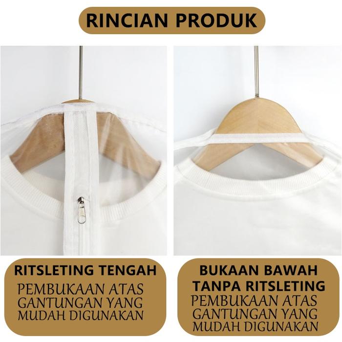 FLASH SALE COVER GANTUNGAN BAJU JAS GAUN ANTI AIR ANTI DEBU PENUTUP RESLETING6080CM