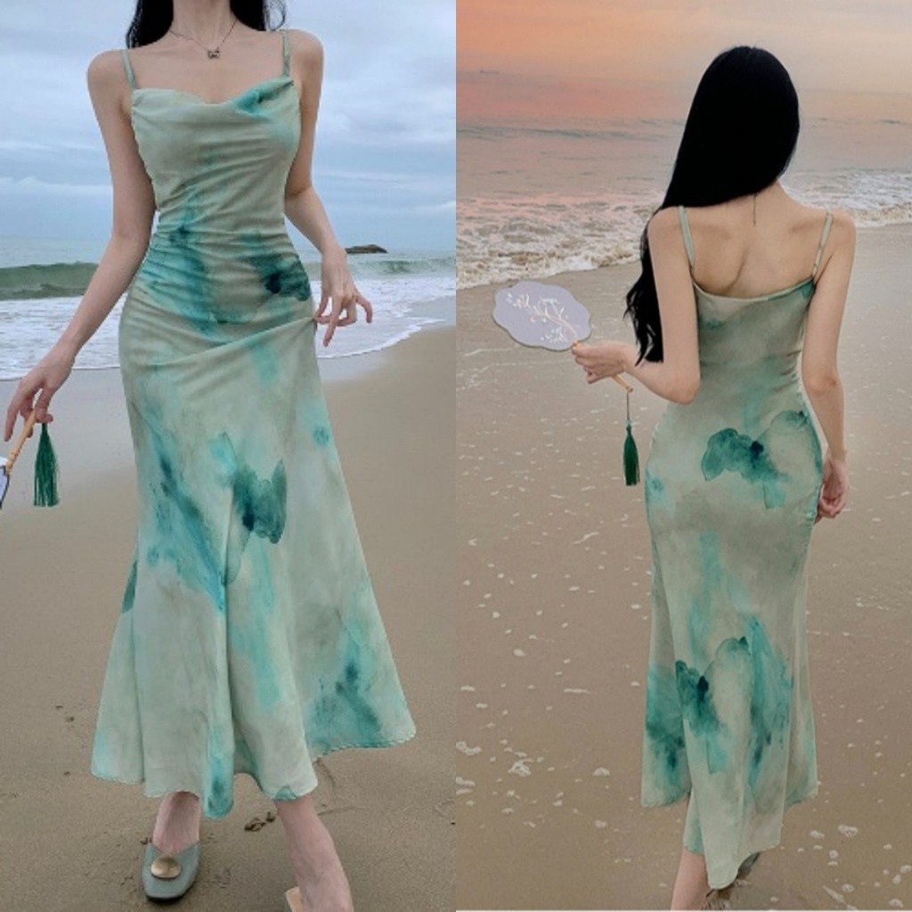 [Star] EMITA BLOOM Summer baju midi dress biru muda bunga dress press body pantai wanita kekinian korean style import pr