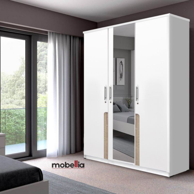 lemari pakaian putih minimalis.
