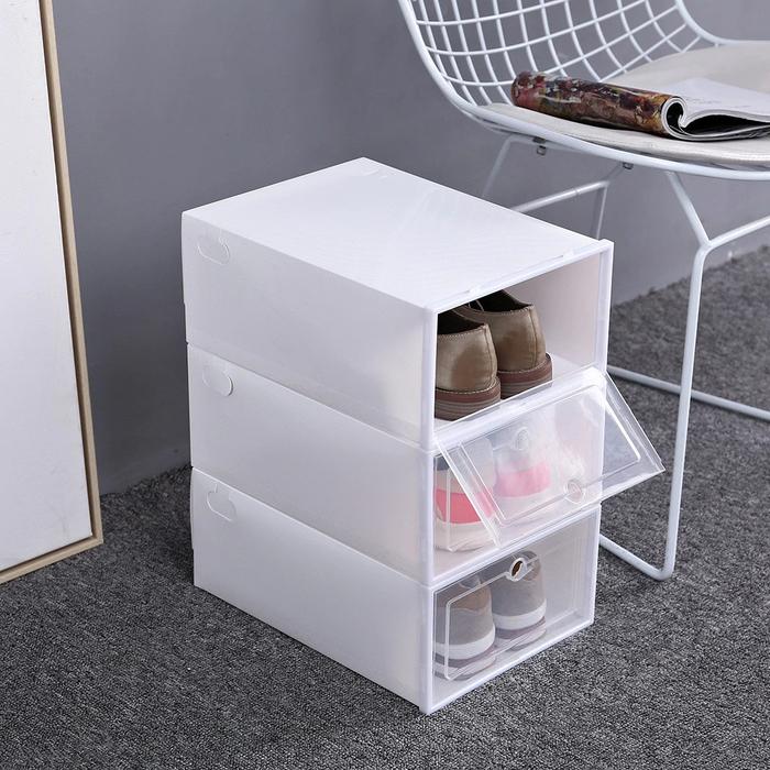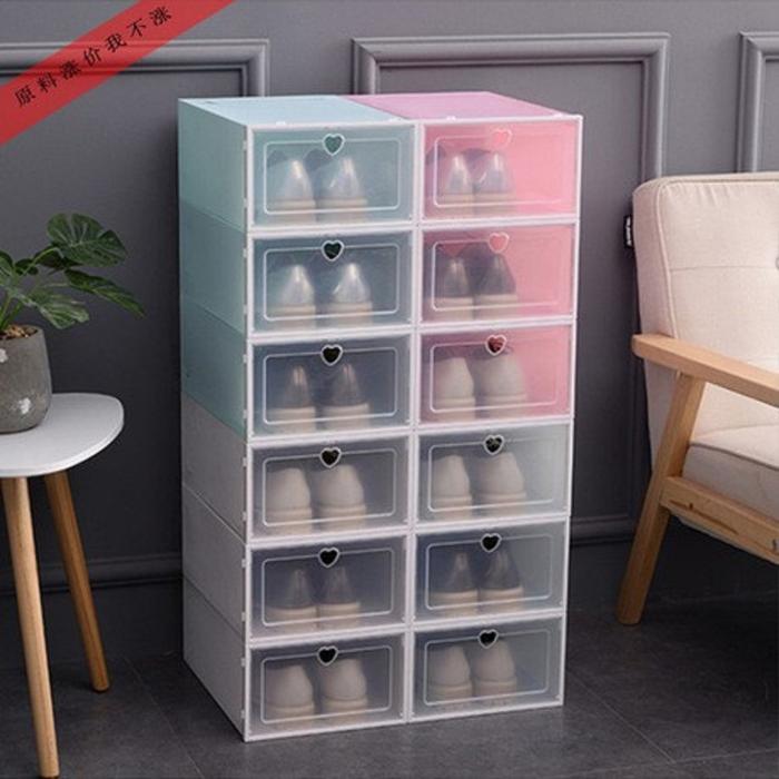 FLASH SALE KS061 RAK KOTAK SEPATU TRANSPARAN KOTAK SEPATU SUSUN TEMPAT SEPATUBIRU