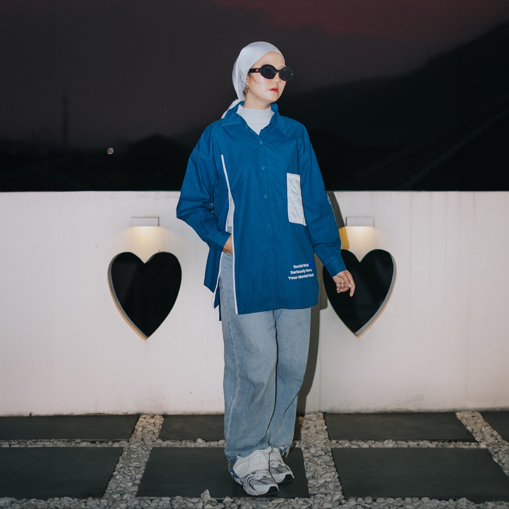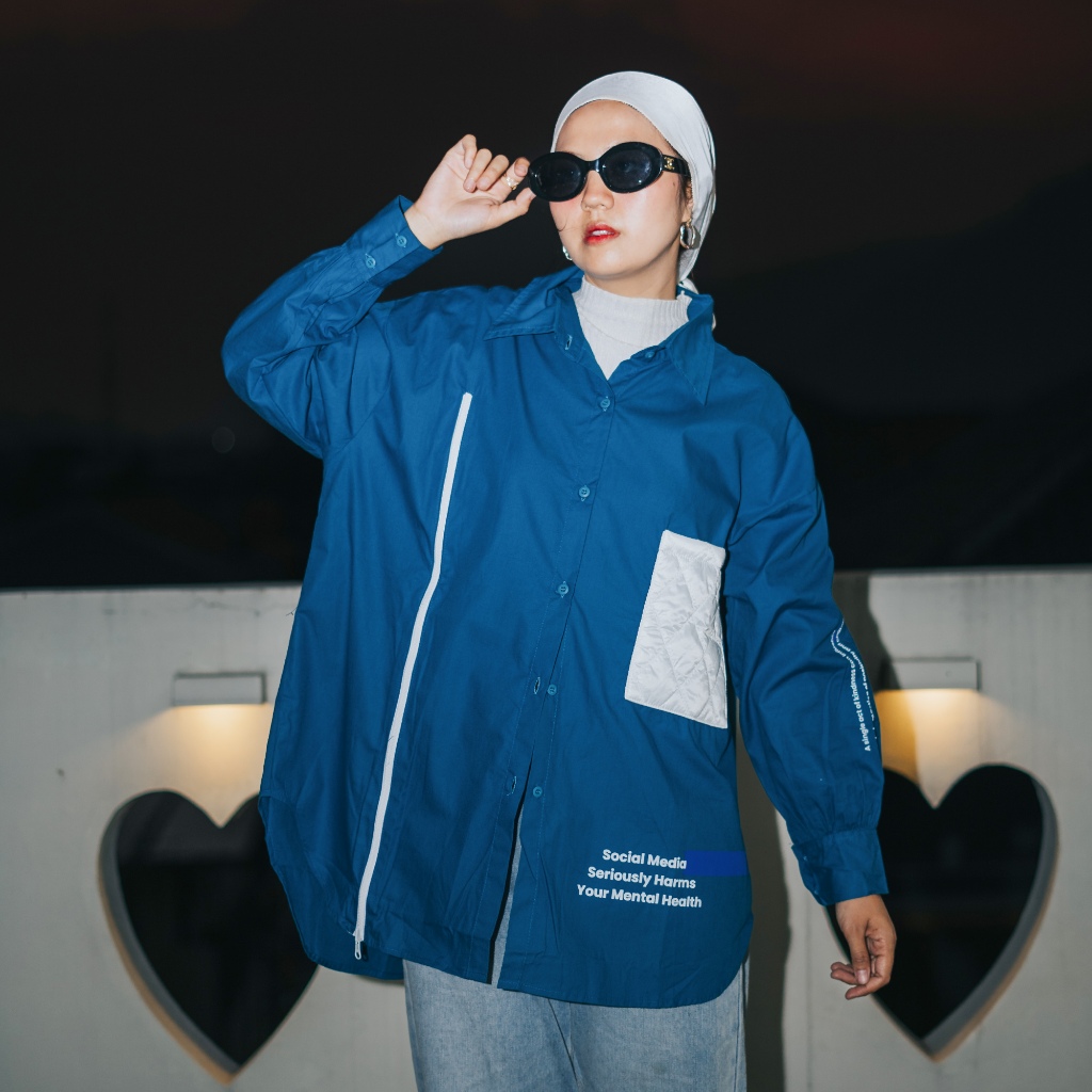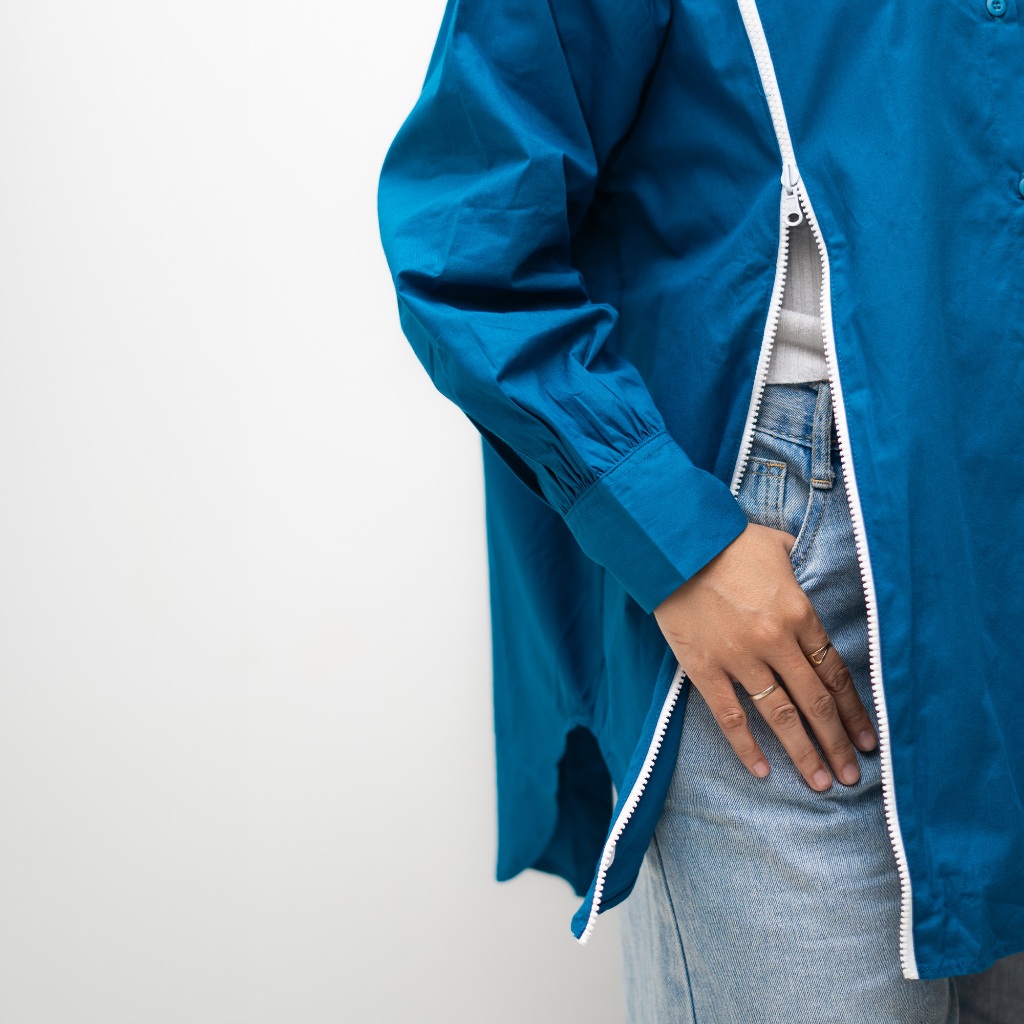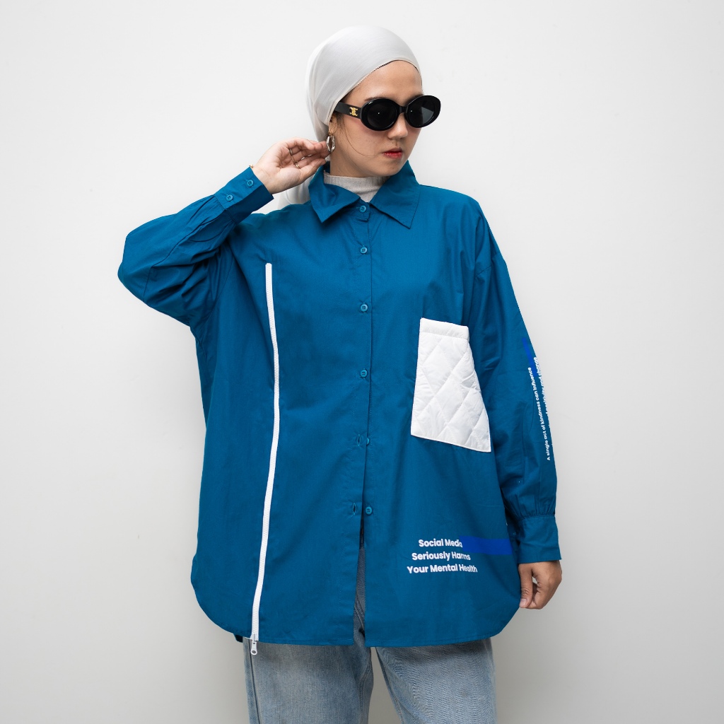 Counique Atasan Kemeja Wanita Oversized lengan Panjang Biru Turkis Navis LD 120