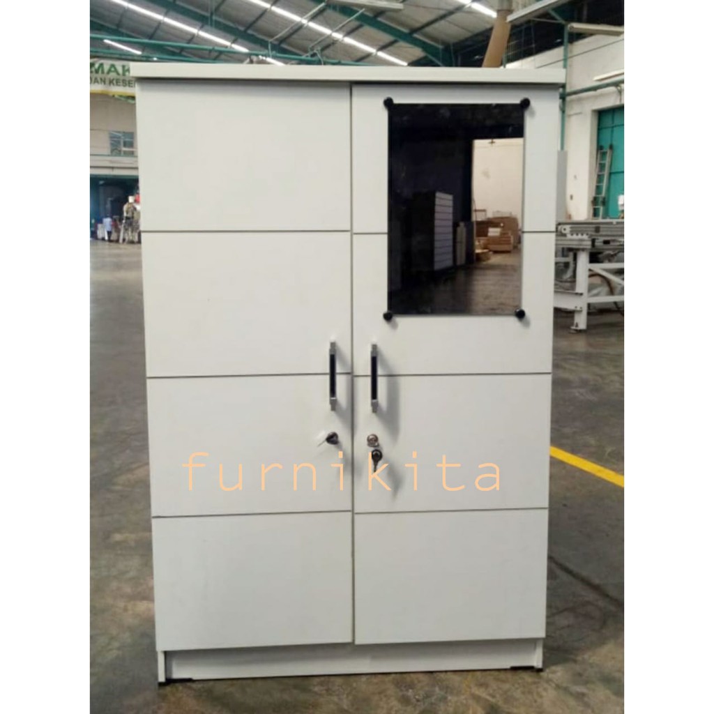 LEMARI PAKAIAN 2 PINTU KAYU KACA PUTIH BABY LOCKER