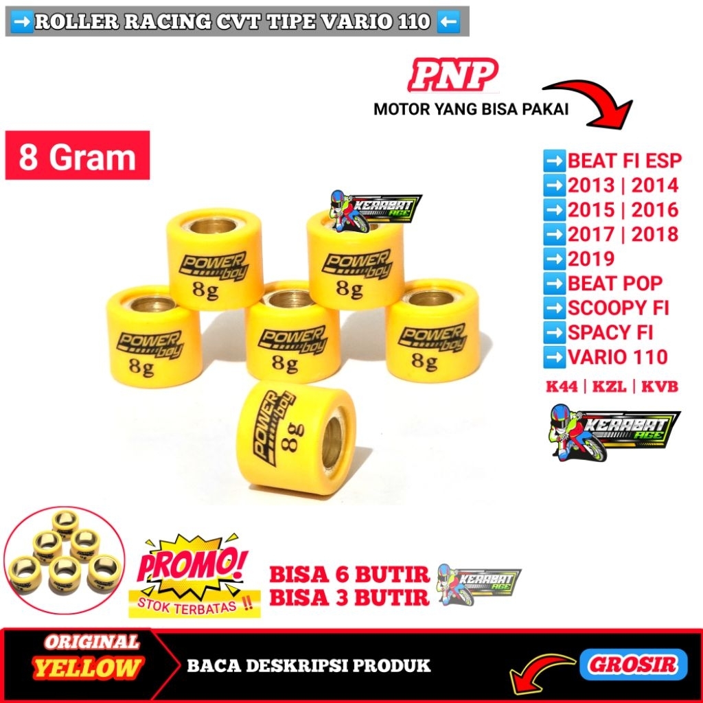 ROLLER ( YELLOW BF ) ROLER LOLER RACING BEAT Fi Esp SCOOPY SPACY VARIO 110 KARBU FI 6 7 8 9 10 11 12 13 14 GRAM GR ORIGINAL Motorcycle