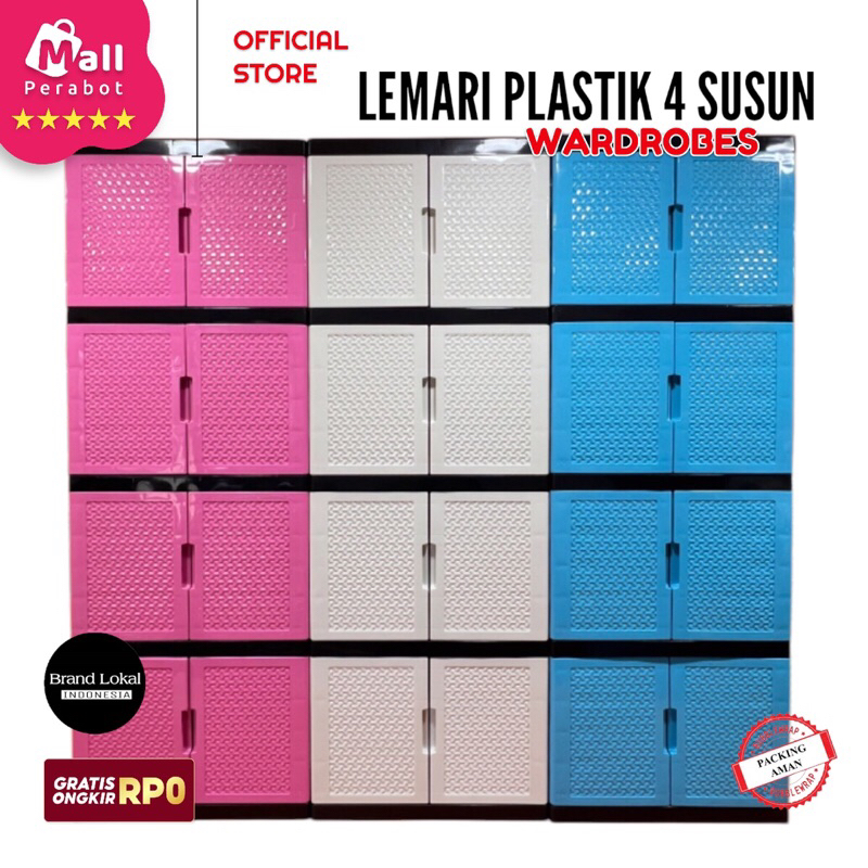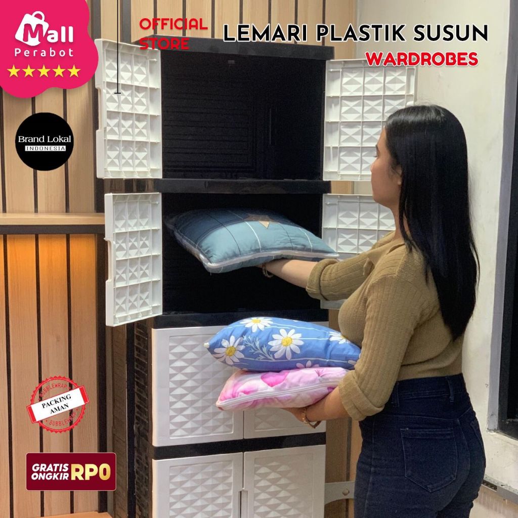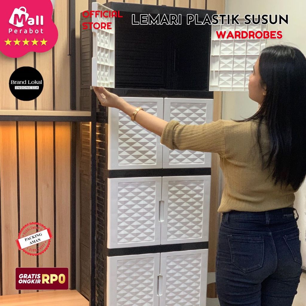 Mall Perabot | Lemari Pakaian Susun Wardrobe Diamond Plastik Persegi | Rak Baju Tingkat Jumbo Pintu Serbaguna Murah