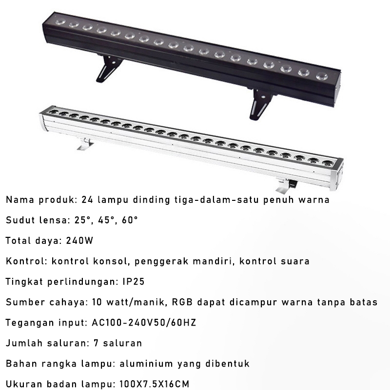 KAIY 24x10W LED Wall Washer 3In1 Full Colour Strobo Flash Auto Run Ikut Musik Mixer DMX512