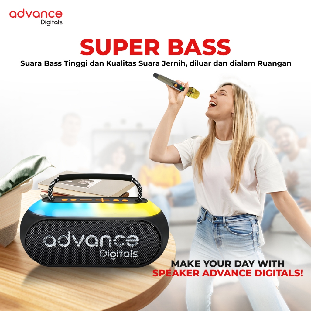 Speaker Bluetooth Dual Microphone Karaoke Advance V18 Portable Gratis Ongkir