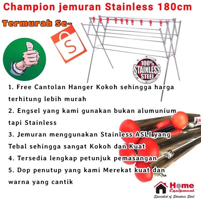 [Star] Jemuran Baju - Jemuran Pakaian Stainless - PANJANG 180cm JEMURAN ASLI STAINLESS KUAT KOKOH ANTI KARAT - Sth1