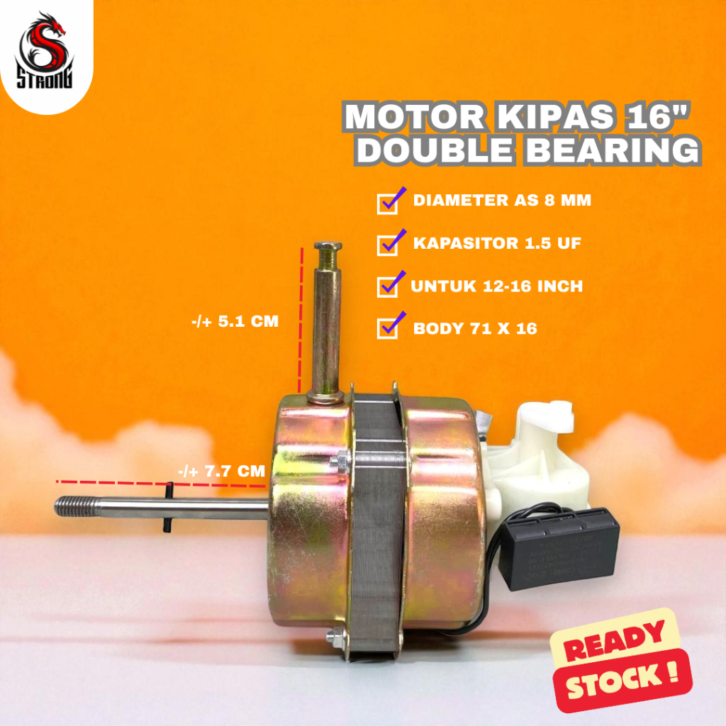 STRONG Dinamo Kipas Angin Double Ball Bearing 12-16 INCH/Motor Kipas Angin Body Bulat Universal