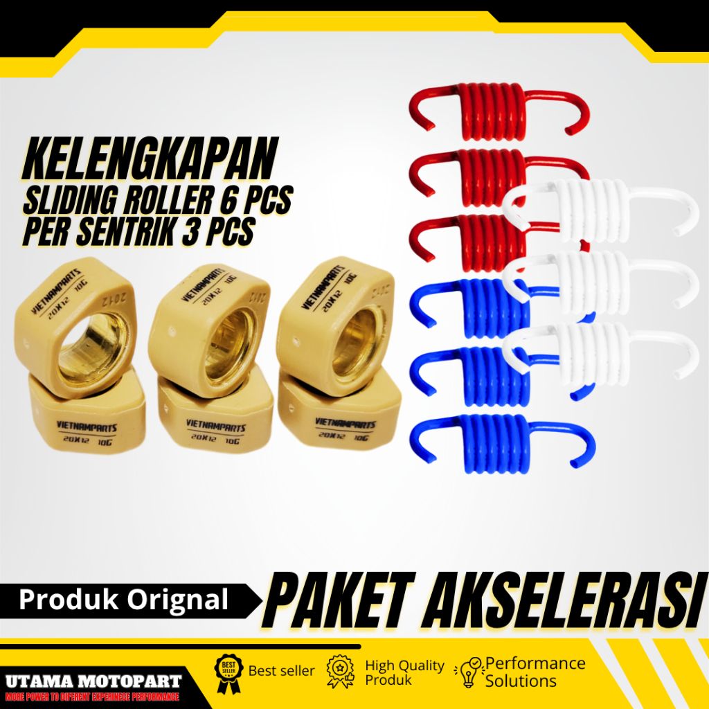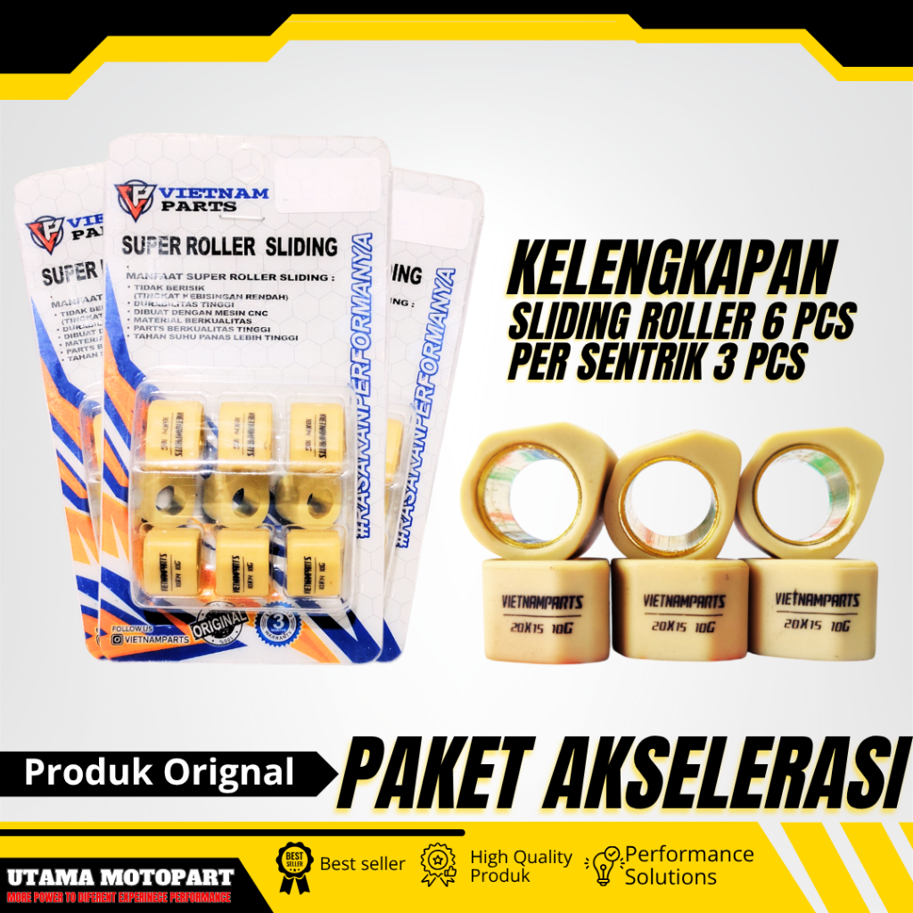 PAKET SLIDING ROLLER 1SET+ PER SENTRI 1500RPM VIETNAM RACING ALL MATIC BEAT FI / ESP SCOOPY FI / ESP