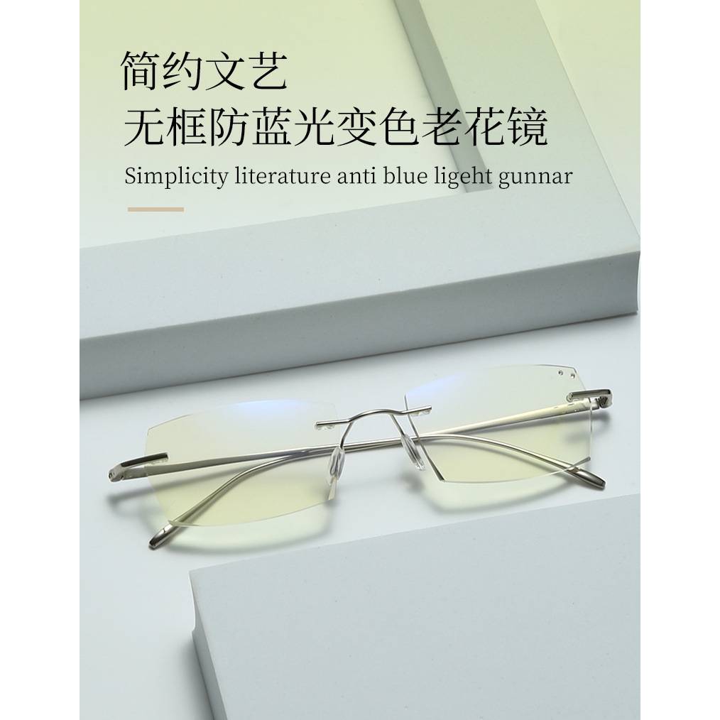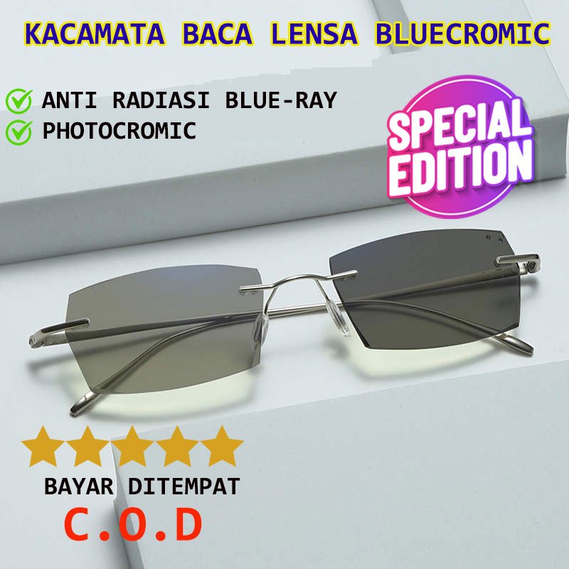 Kacamata Baca Plus Anti Radiasi Blueray dan Photocromic Lensa Bluecromic Frameless Usia 50 Ke Atas