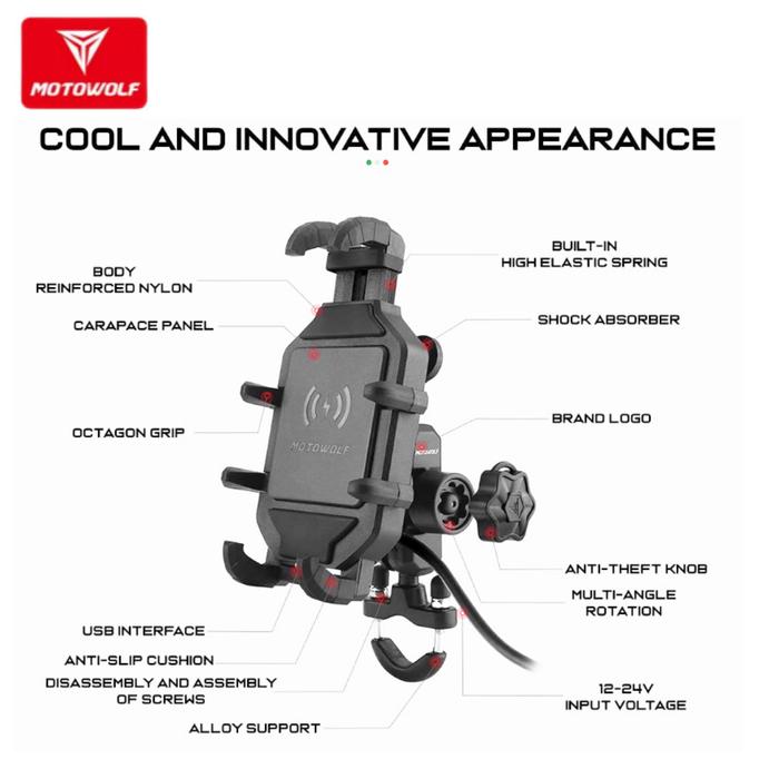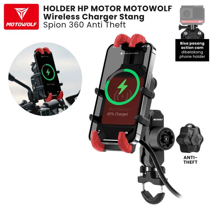 FLASH SALE MOTOWOLF V3 PHONE HOLDER WIRELESS CHARGER STABILIZER ANTI THEFT 360BLACK SPION