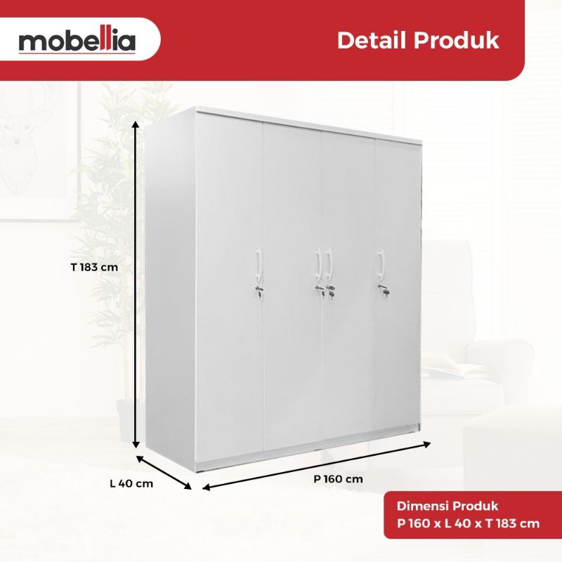 lemari pakaian 4 pintu putih modern minimalis 2 cermin 4 laci penyimpanan