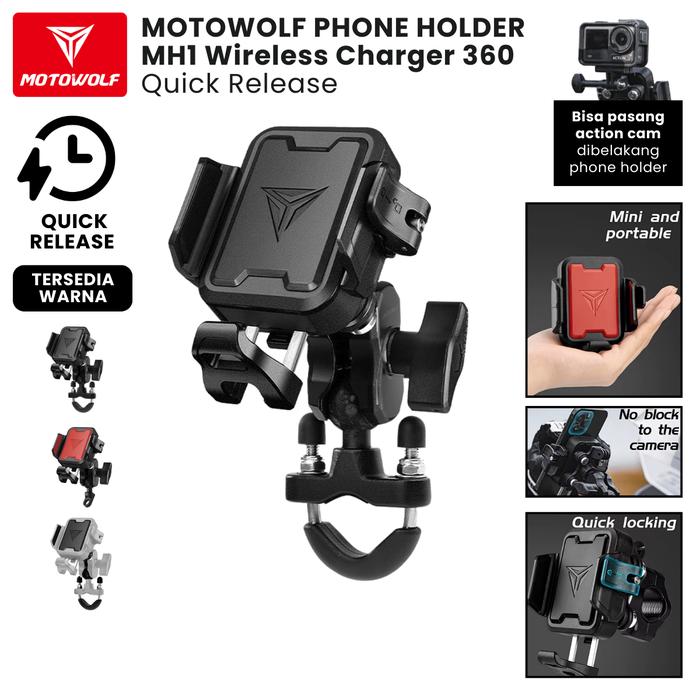 FLASH SALE MOTOWOLF PHONE HOLDER MOTOR MH1 WIRELESS CHARGER 360 QUICK RELEASEBLACK SPION