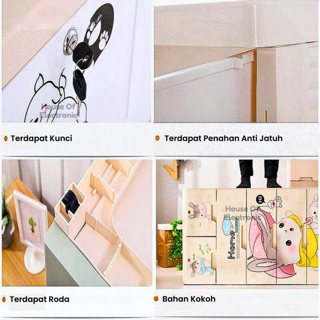 Lemari Plastik Susun Bear 4 Dan 5 Tingkat Tempat Penyimpanan Laci Multifungsi Lemari Pakaian Anak Ada Kunci Storage Box Lemari Baby Set Roda Storage Kabinet