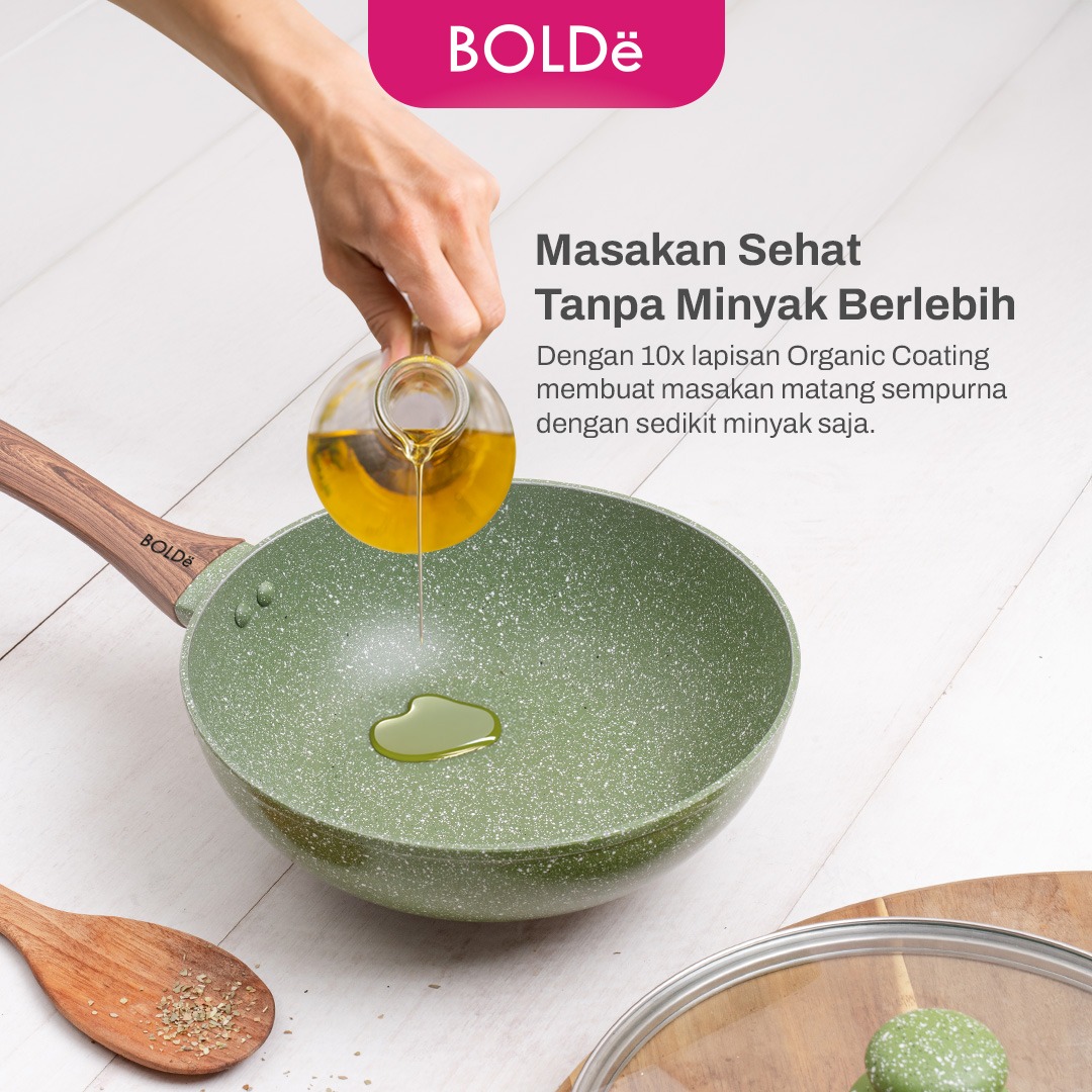 Organic Green 3pcs set Fry Pan 22 + Wok 24