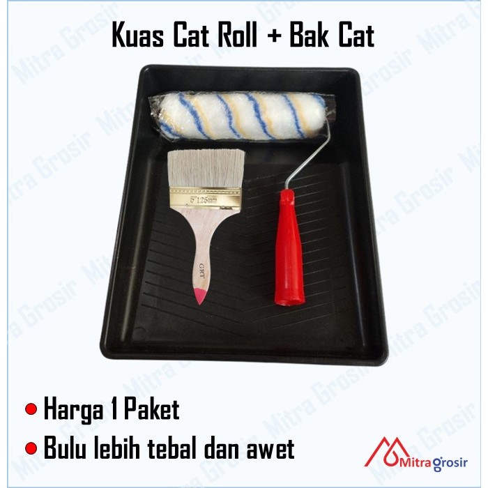 Paket Alat Cat Kuas Roll 9 Inch + Bak Cat + Kuas 4" Promo MURAH / Paket Alat Cat Tembok Bak Cat Paket Ekonomis 3 in 1 M