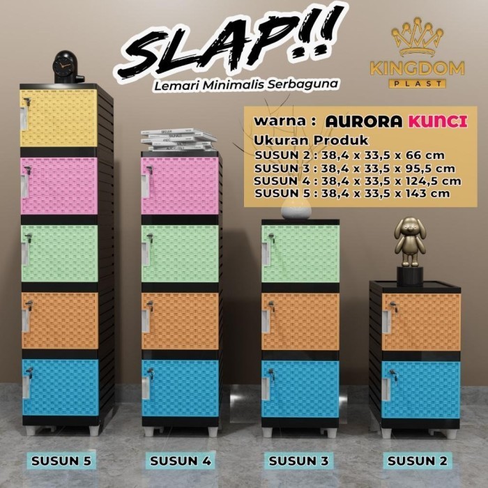 LEMARI PLASTIK KINGDOM SLAP 2 SUSUN ZEBRA KUNCI / TANPA KUNCI / AURORA KUNCI / TIDAK KUNCI / RAK SERBAGUNA