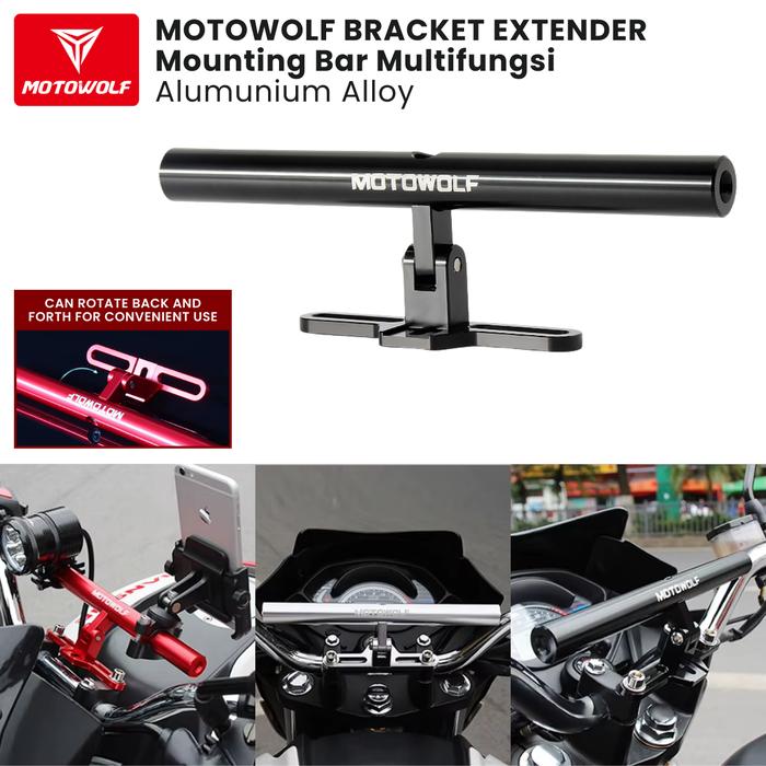 FLASH SALE MOTOWOLF BRACKET MOTORCYCLEEXTENDER MOUNTING BAR MULTIFUNGSI ALMUNIUM ALLOYBLACK