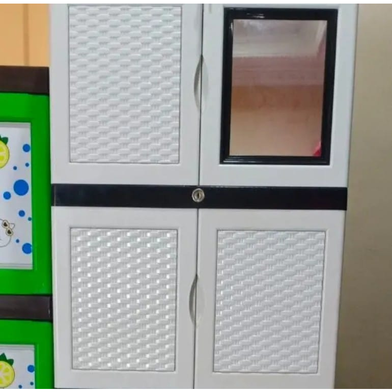 LEMARI PLASTIK LEMARI PAKAIAN LEMARI BAJU LEMARI BUKU SSN 2 KACA + KUNCI