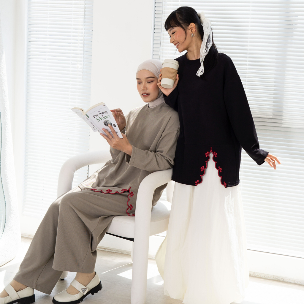 Eclemix Top Orari | Atasan Wanita Lengan Panjang Oversize Bordir Floral Casual Chic