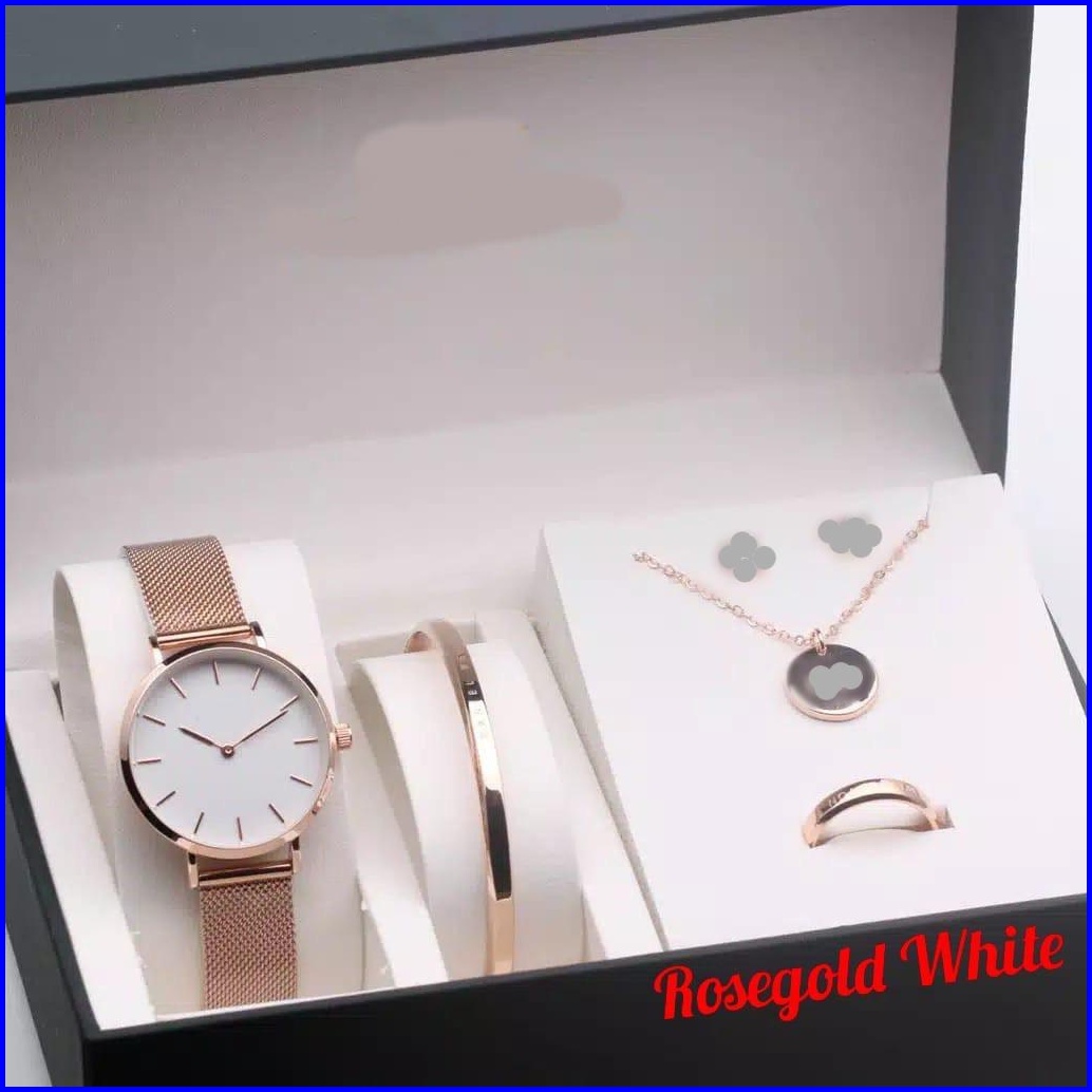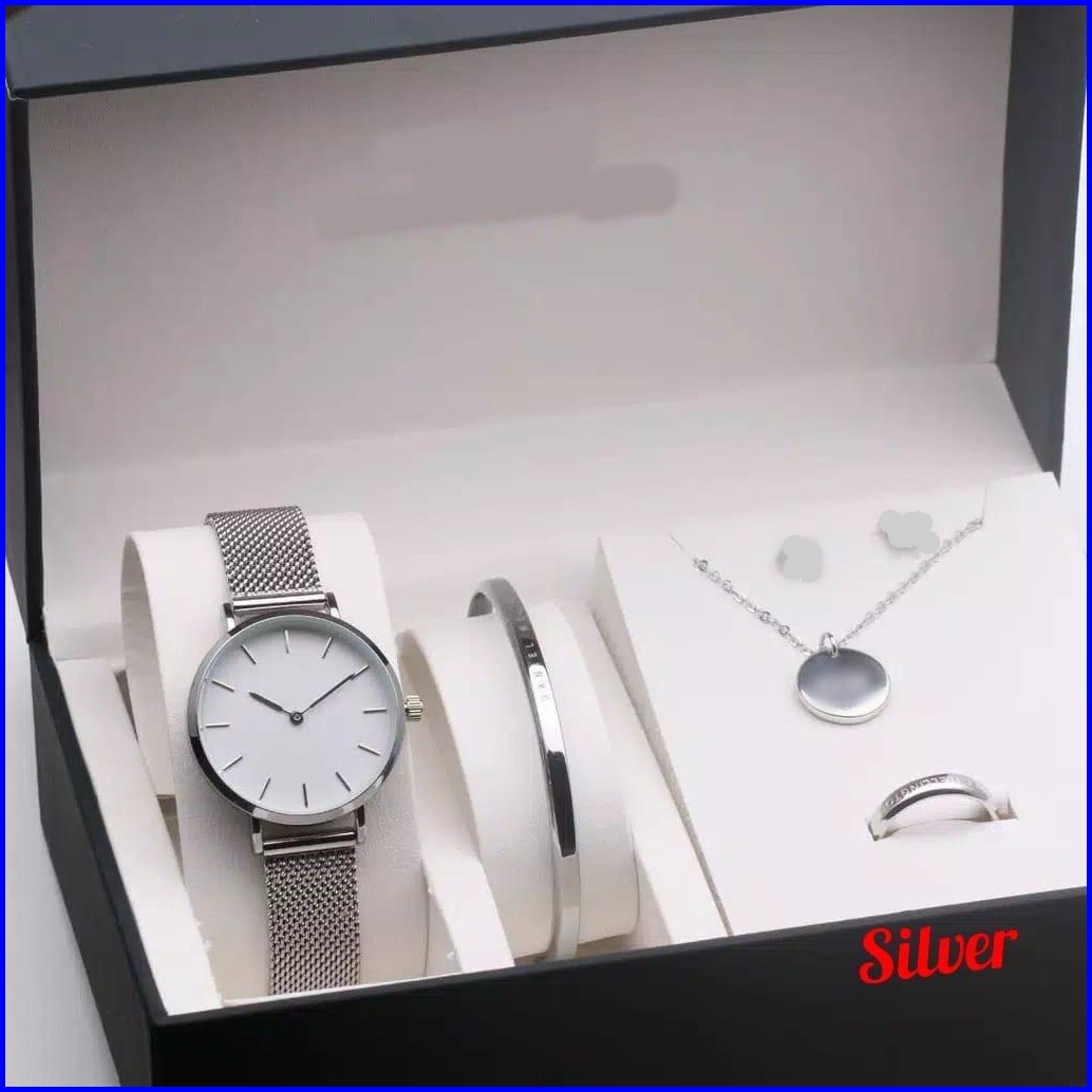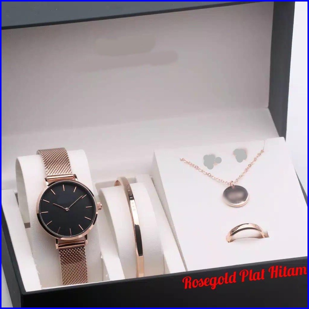 Jam Tangan Wanita Premium Petite Pasir Rantai Stainless Paket Kalung Gelang Cincin Diameter 3 Cm Jam Tangan Fashion Wd