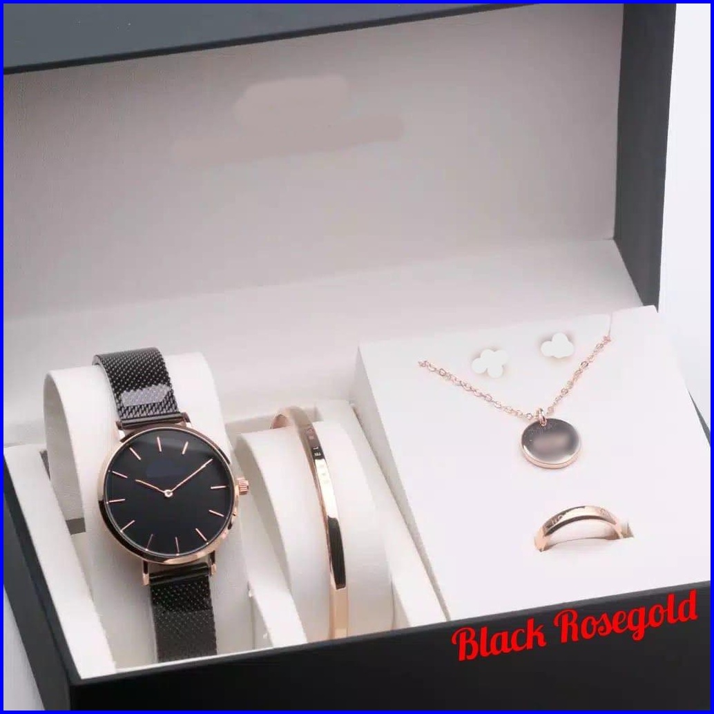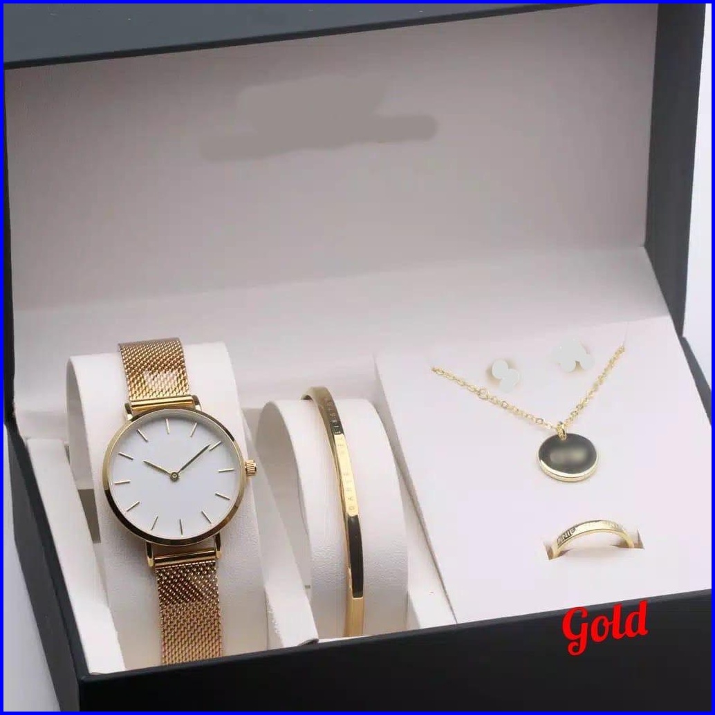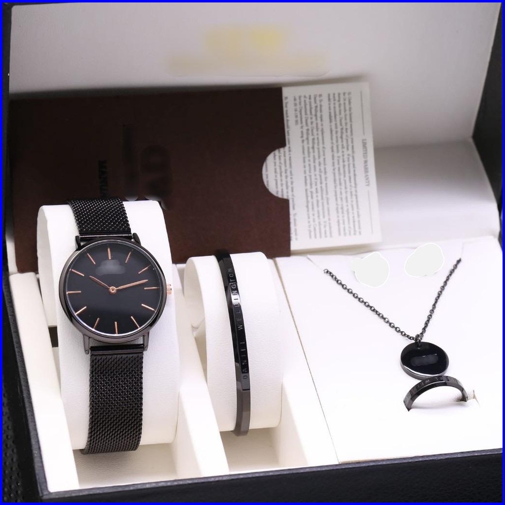 Jam Tangan Wanita Premium Petite Pasir Rantai Stainless Paket Kalung Gelang Cincin Diameter 3 Cm Jam Tangan Fashion Wd