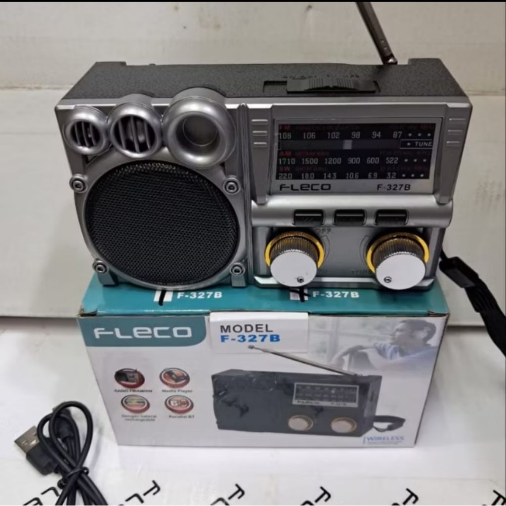 Radio Fleco F-327B FM/AM/SW/MP3 3 Band Speaker Radio Jadul Classic Design