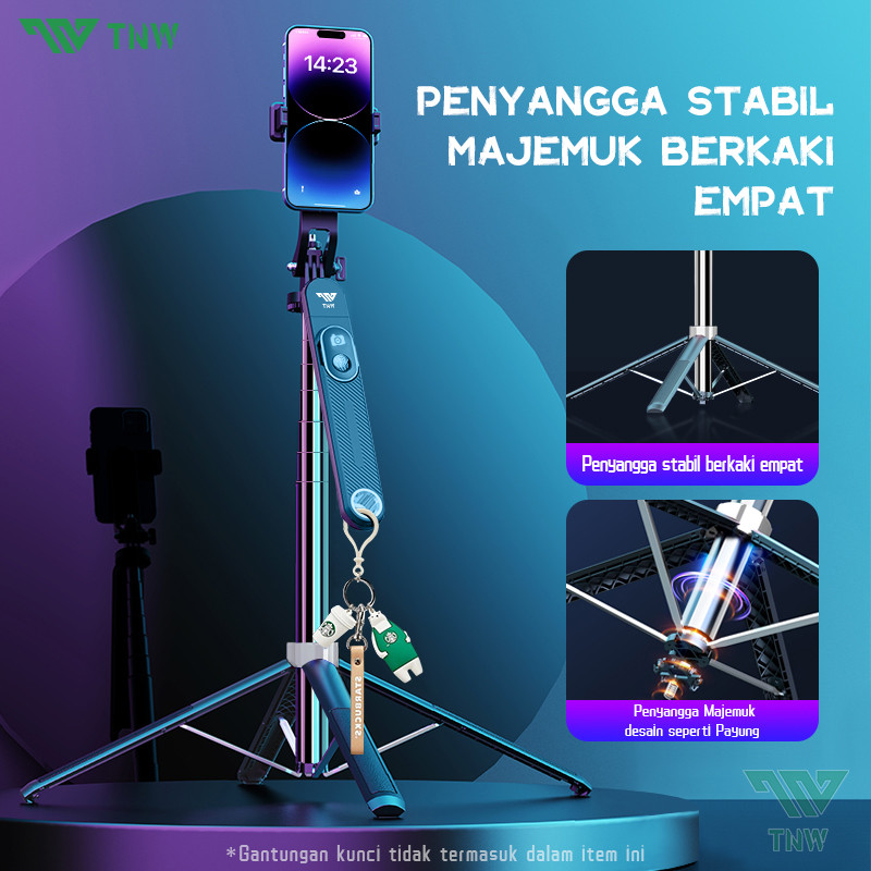 TNW S25 Selfie Stick Bluetooth Tongsis Tripod 180cm with Remote Portabel Tripod Dengan 1/4 Adaptor Untuk HP Kamera DSLR