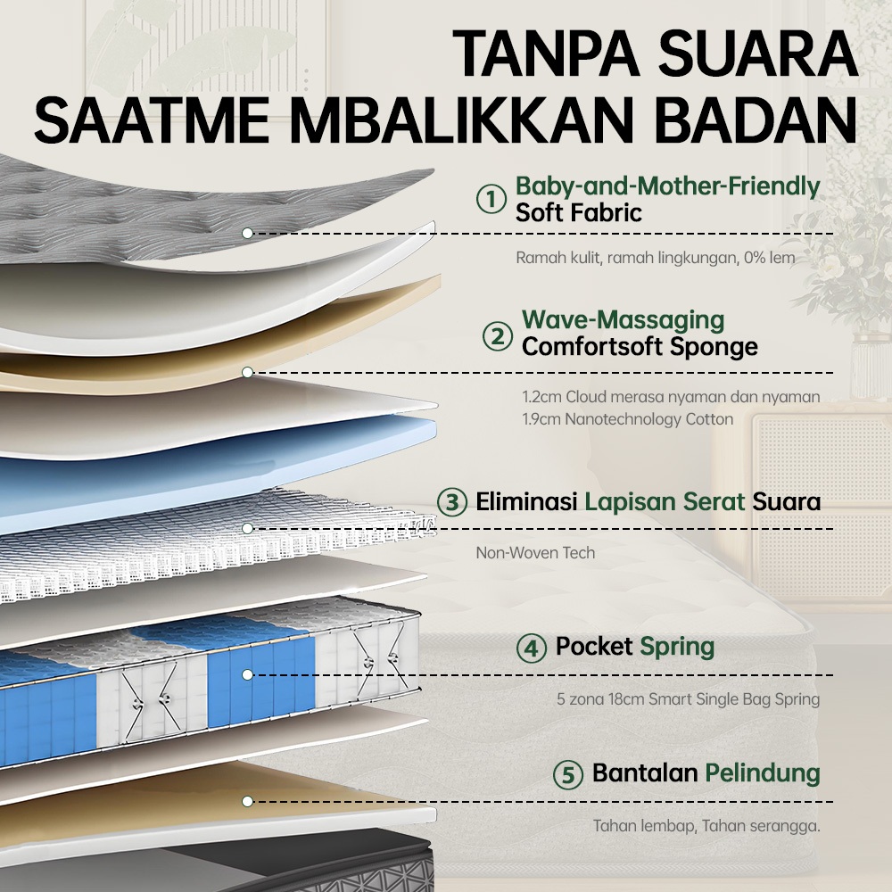 【Gratis Bantal】kasur busa kasur springbed 90/180CM tebal 26CM spring bed single pocket spring tanpa suara N7