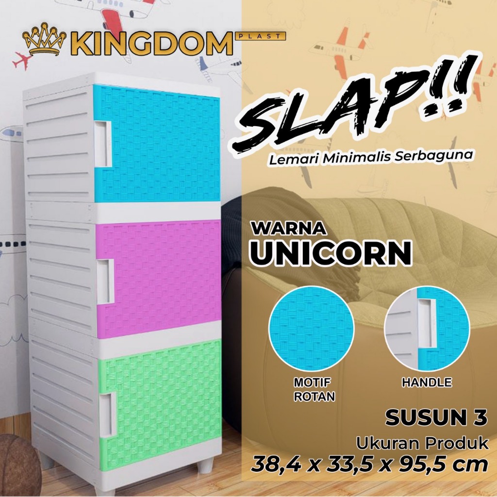 LEMARI PAKAIAN PLASTIK KINGDOM SLAP ROTAN MINIMALIS LEMARI NAKAS SERBAGUNA