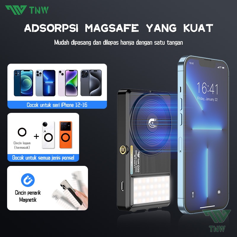 TNW D30 Selfie Light Portable Magnetic Fill Light Mini Dual Light Led Video Lampu Portable Lampu Camera Handphone