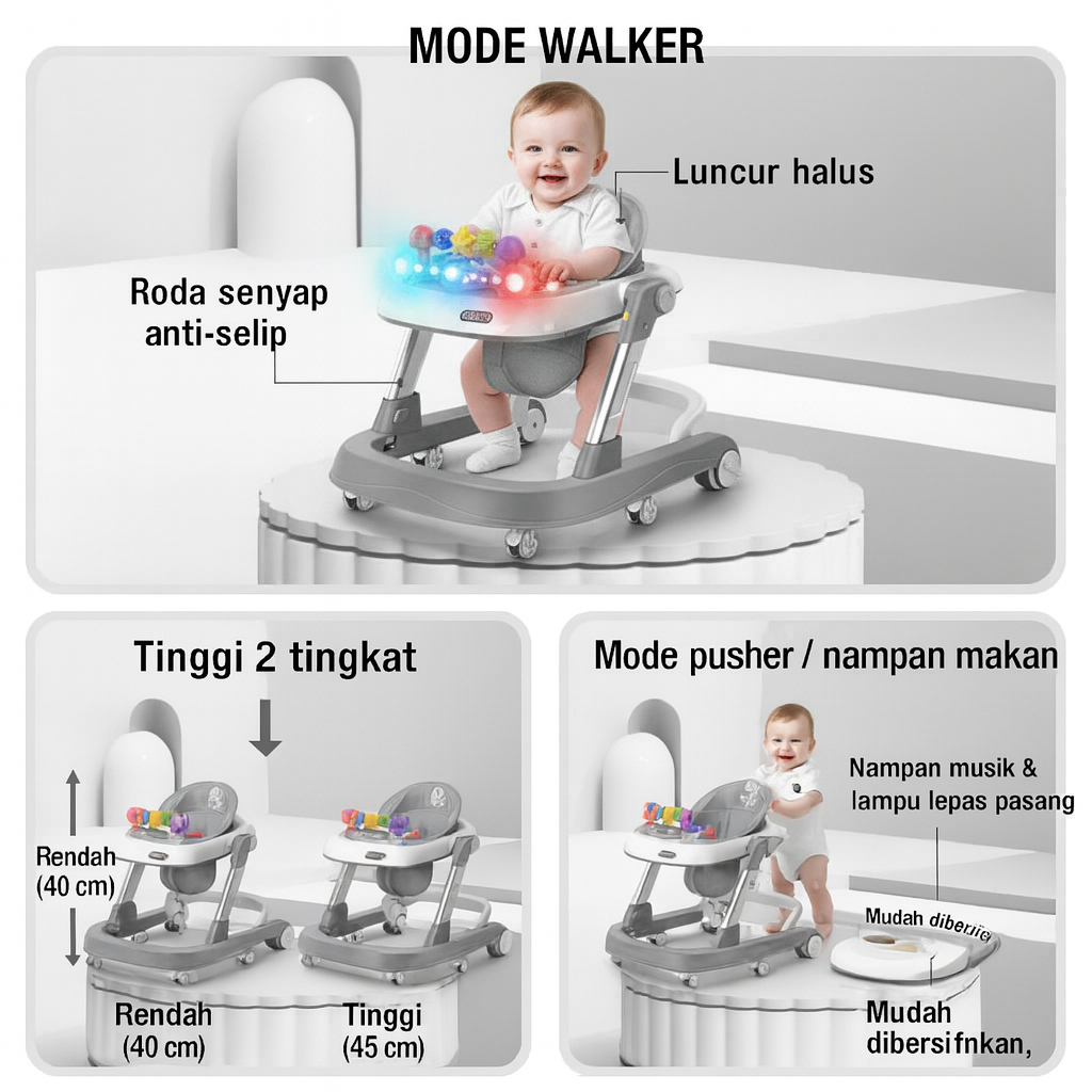 [Star] BEIGE Baby Walker Bayi Multifungsi Lipat Mainan Musik 5 in 1 Beban 30kg