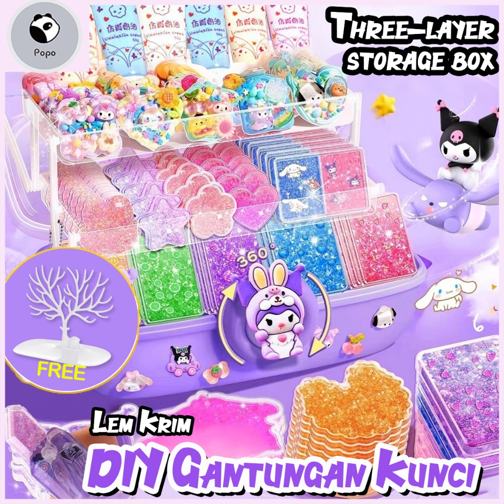 1004pcs DIY Gantungan Kunci Guka Set DIY Keychain Set Kartu Stiker Luca Kotak Guka Cream Gum Kartun Mainan Anak