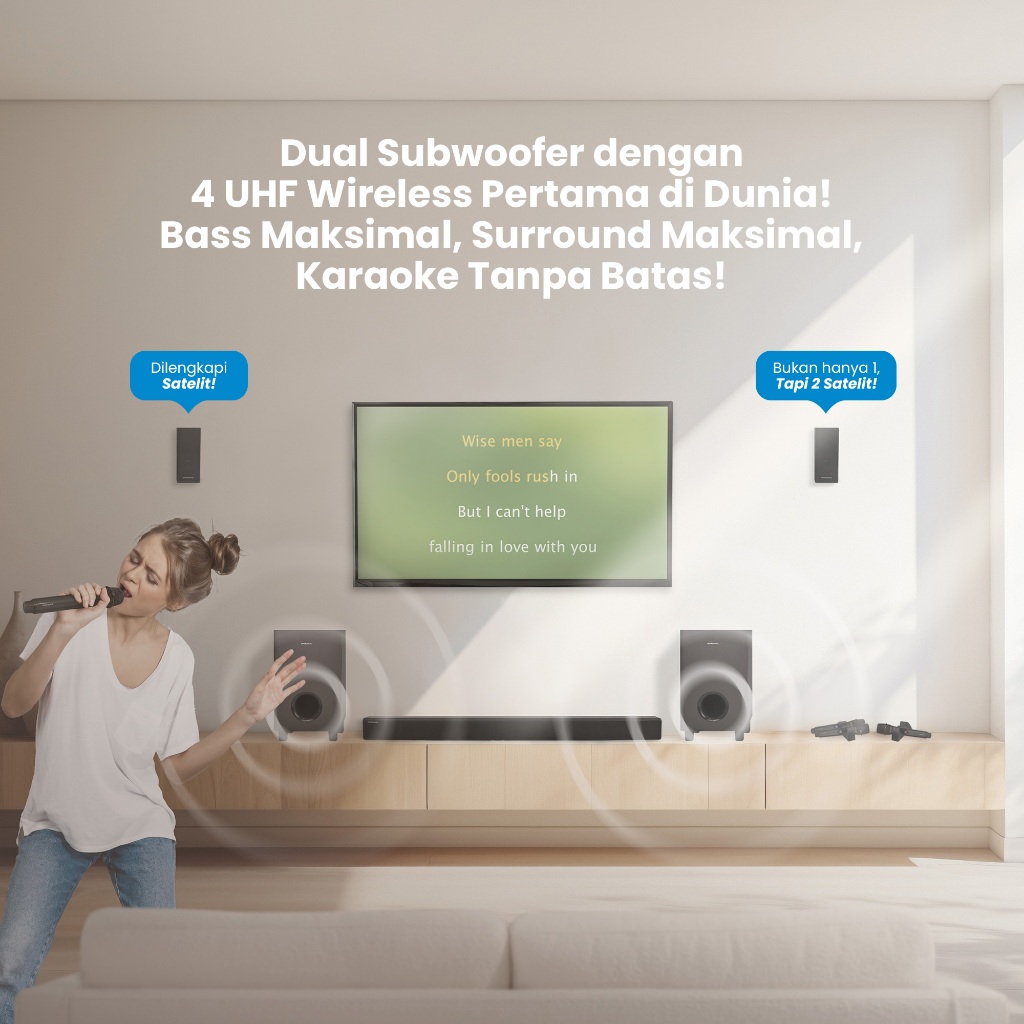 Speaker CST 907N+ Poseidon Bass - Home Theater Soundbar 360W with Karaoke, Dual Subwoofer & 4 Wireless Mics