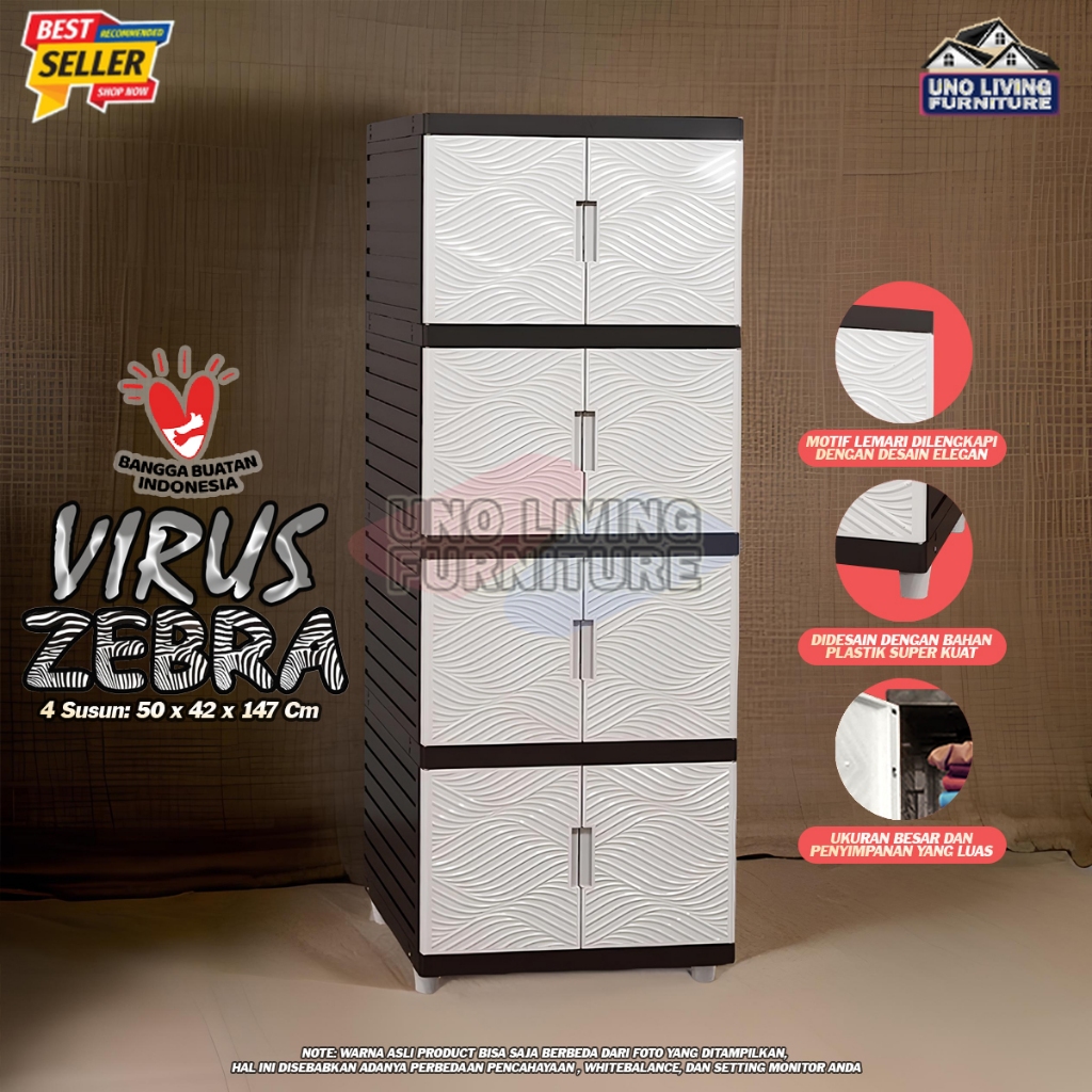 LEMARI PAKAIAN KINGDOM VIRUS 3 SUSUN LEMARI PINTU KABINET LEMARI PLASTIK MINIMALIS - FULL CREAM