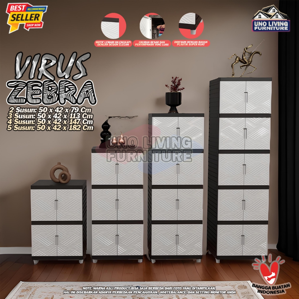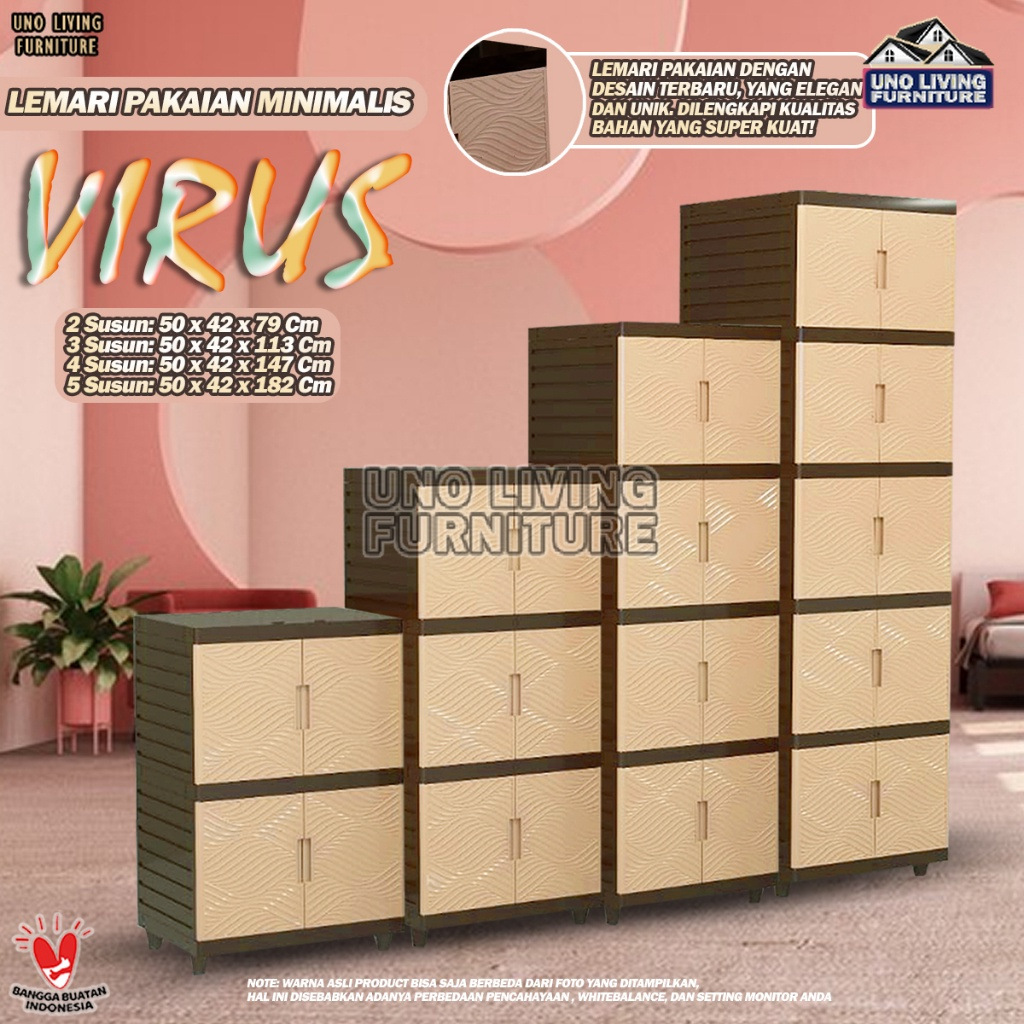 LEMARI PAKAIAN KINGDOM VIRUS 5 SUSUN LEMARI PINTU KABINET LEMARI PLASTIK MINIMALIS - FULL CREAM