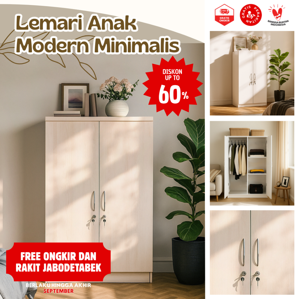 Harvest Furniture Lemari Baju Anak 2 Pintu Moderen Minimalis Lemari Bayi Balita