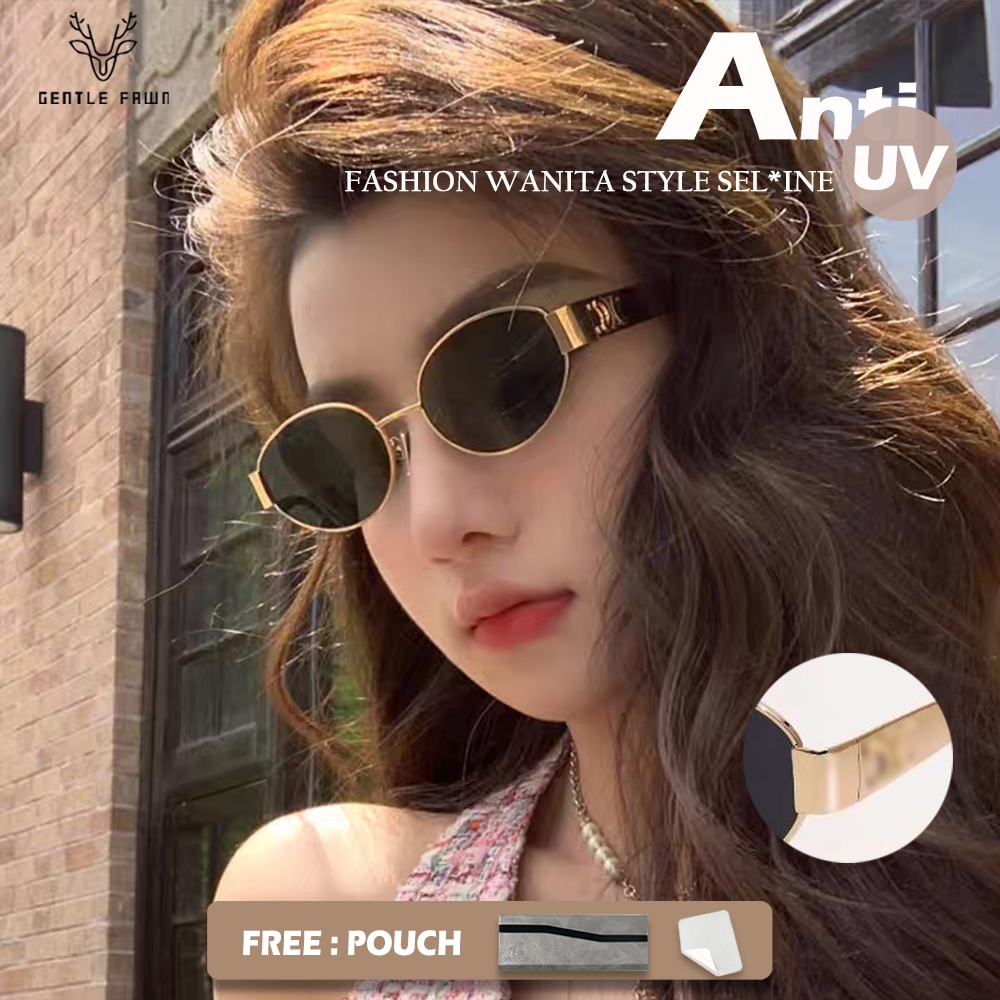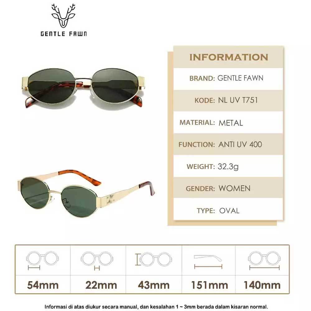 Gentle Fawn Kacamata Sunglasses Anti UV 400 Anti Silau Bentuk Oval Bahan Metal Kuat Fashion Wanita Trendy T751