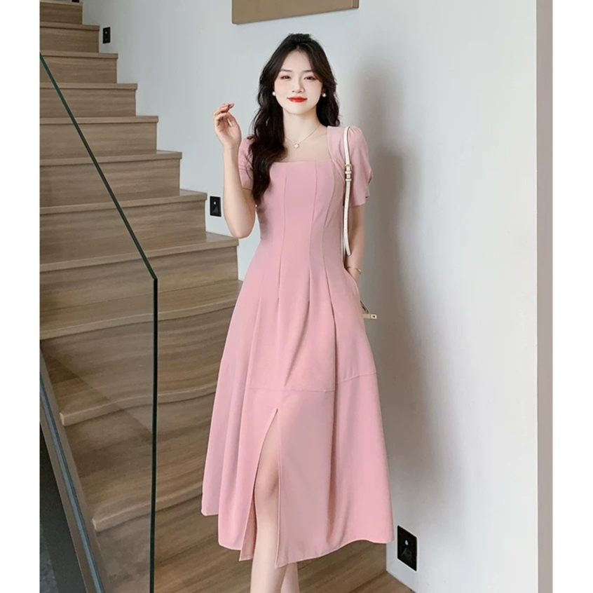 [Mall]long dress hitam bunga lengan pendek dress natal wanita kekinian dress jumbo korean style terbaru 2025 - snj27