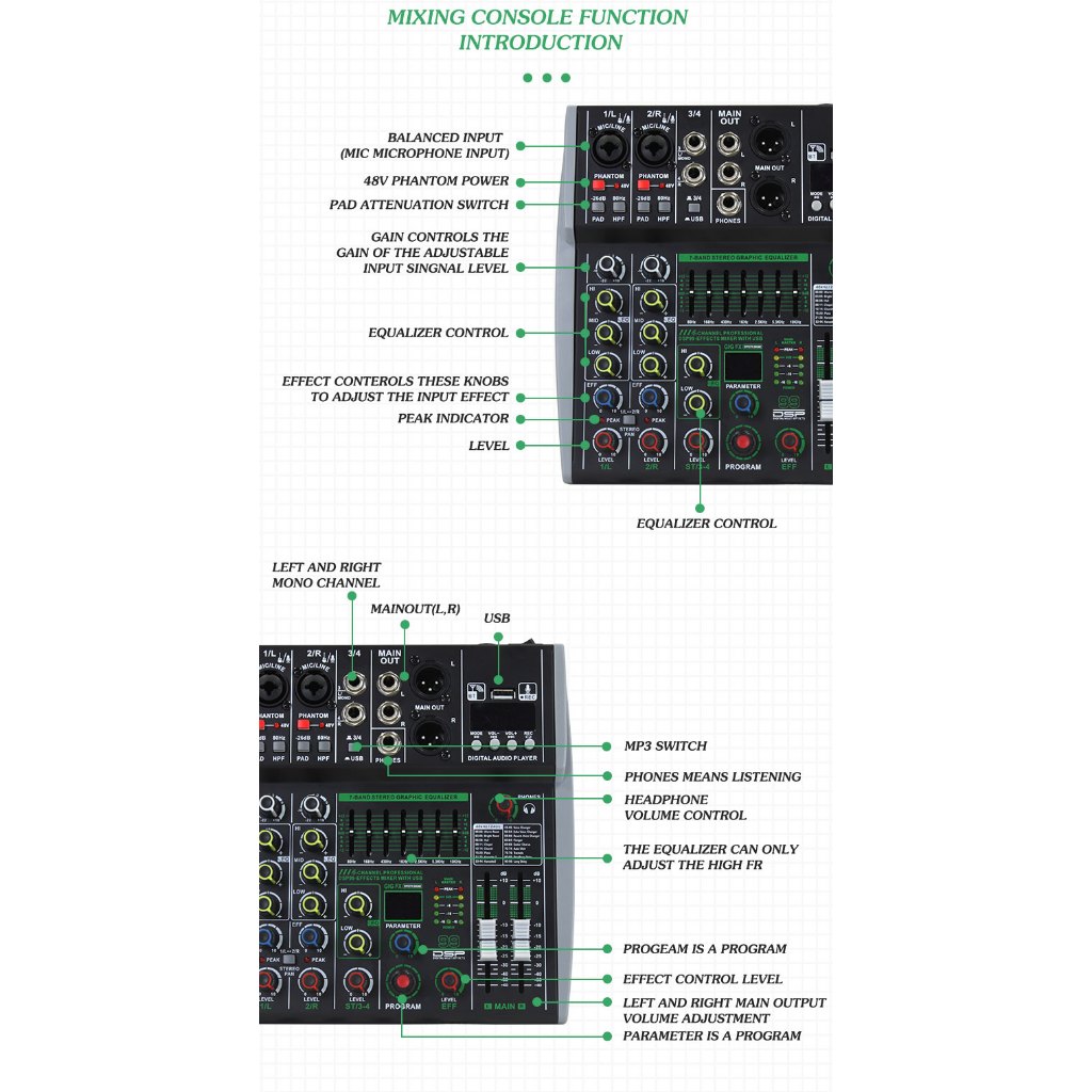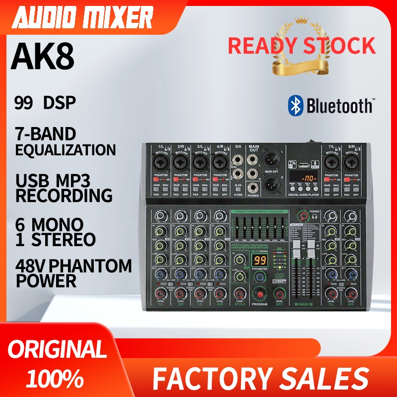 AIBEDO AK 4 /6/8 Saluran Mixer Audio Profesional Dapat dihubungkan ke catu daya mobil 12v 99 DSP USB Mini Audio Interface